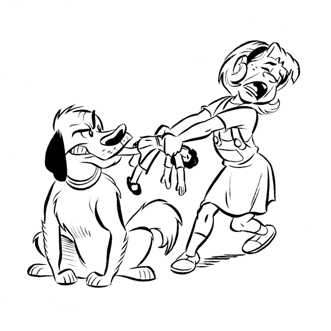 Grrr, ik had het speeltje het eerst! Jij bent nog niet zo groot en ik kan jou wel aan!