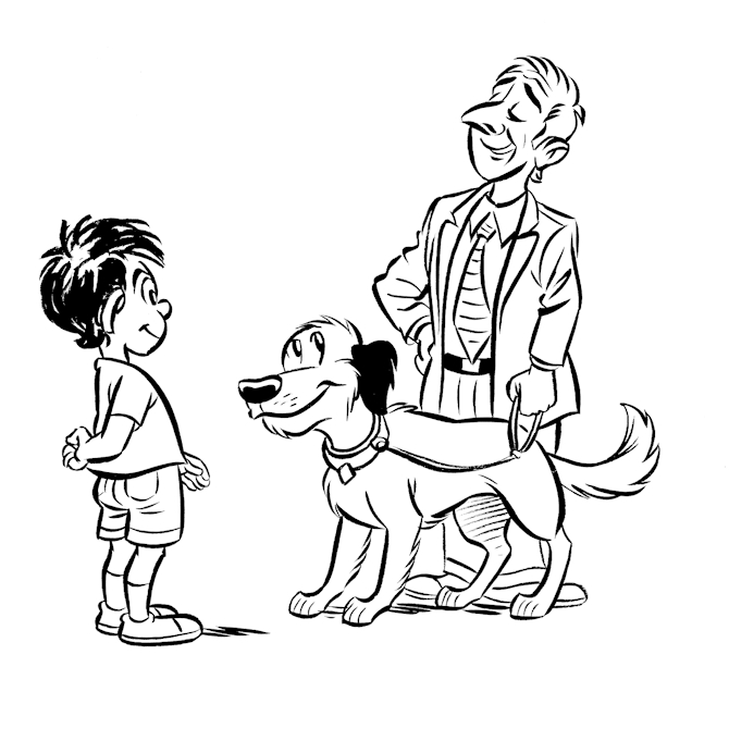 Helemaal goed! Altijd eerst vragen of je mag aaien! Als mijn baasje het goed vindt, steek dan rustig je hand een klein stukje naar mij uit. Blijf zelf staan. Als ik het fijn vind, kom ik naar je toe.