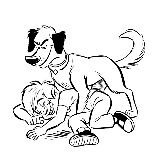 O jee... Als jij onder mij gaat liggen, zijn mijn tanden dicht bij je hoofd en dat kan fout gaan. En als je op me gaat liggen, dan doe je me pijn. Dan kan ik je bijten!